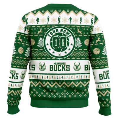 Hooktab NBA Milwaukee Bucks Custom Name And Number Ugly Christmas Sweater