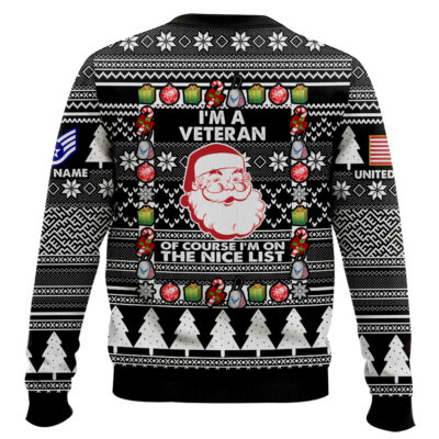 Hooktab US Air Force I’m A Veteran, Of Course I’m On The Nice List – Custom Name And Rank Ugly Sweater