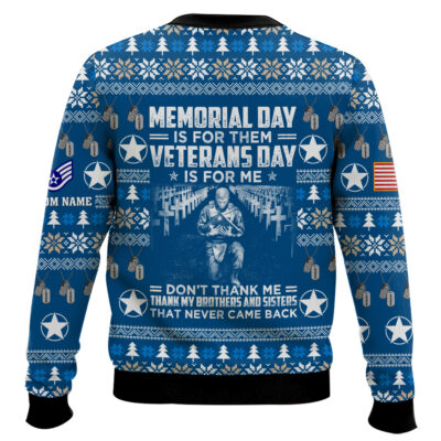Hooktab US Air Force Thank My Brothers And Sisters That Never Came Back – Custom Name And Rank Ugly Sweater