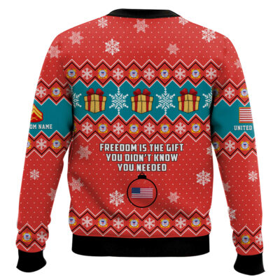 Hooktab US Coast Guard Freedom Is The Gift You Didn’t Know You Needed – Custom Name And Rank Ugly Sweater