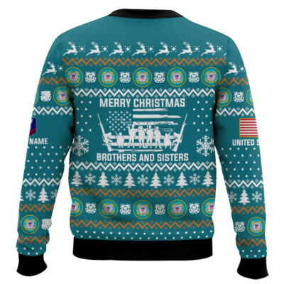 Hooktab US Coast Guard Merry Xmas Brothers And Sisters – Custom Name And Rank Ugly Sweater
