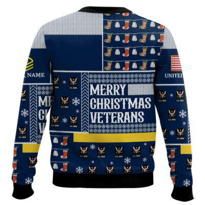 Hooktab US Navy Veteran Merry Christmas – Custom Name And Rank Ugly Sweater