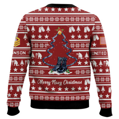Hooktab US Navy Merry Christmas Veterans – Custom Name And Rank Ugly Sweater
