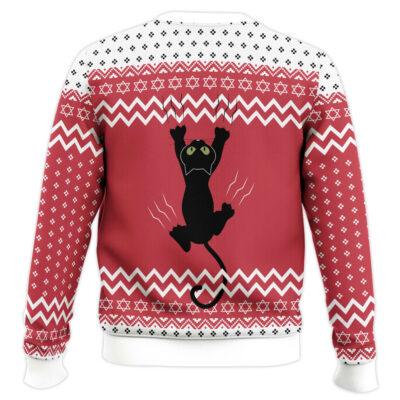 Hooktab Climbing Black Cat Ugly Christmas Sweater