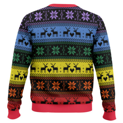 Hooktab LGBT Rainbow Deer LGBT Support Ugly Christmas Sweater