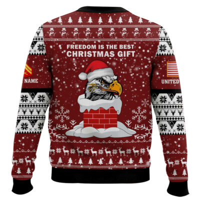 Hooktab US Army Freedom Is The Best Gift – Custom Name And Rank Ugly Sweater