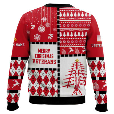 Hooktab US Marine Corps Merry Christmas Veteran – Custom Name And Rank Ugly Sweater