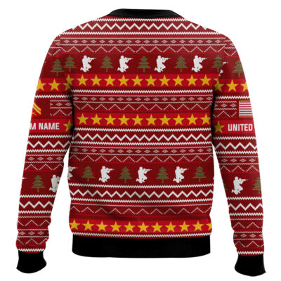 Hooktab US Army Merry Christmas Veteran – Custom Name And Rank Ugly Sweater