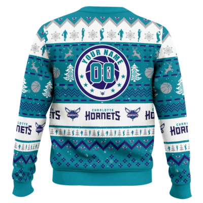 Hooktab NBA Charlotte Hornets Custom Name And Number Ugly Christmas Sweater