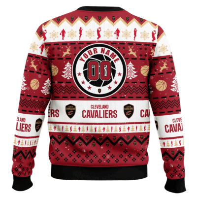 Hooktab NBA Cleveland Cavaliers Custom Name And Number Ugly Christmas Sweater