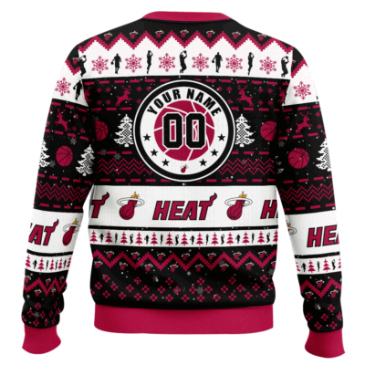 Hooktab NBA Miami Heat Custom Name And Number Ugly Christmas Sweater