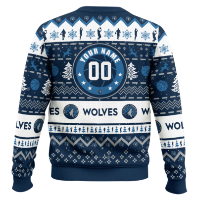 Hooktab NBA Minnesota Timberwolves Custom Name And Number Ugly Christmas Sweater
