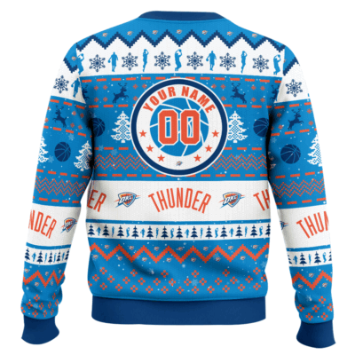 Hooktab NBA Oklahoma City Thunder Custom Name And Number Ugly Christmas Sweater