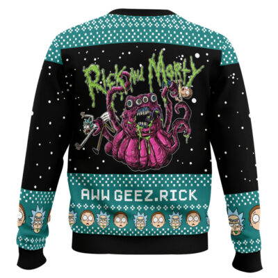 Hooktab Rick And Morty Aww Geez Rick Ugly Christmas Sweater
