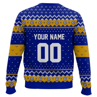 Hooktab Soccer Chelsea F.C. Custom Name And Number Ugly Christmas Sweater