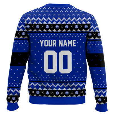 Hooktab Soccer Inter Milan Custom Name And Number Ugly Christmas Sweater