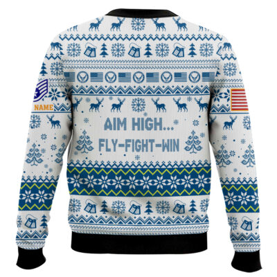 Hooktab US Air Force Aim High, Fly-Fight-Win – Custom Name And Rank Ugly Sweater
