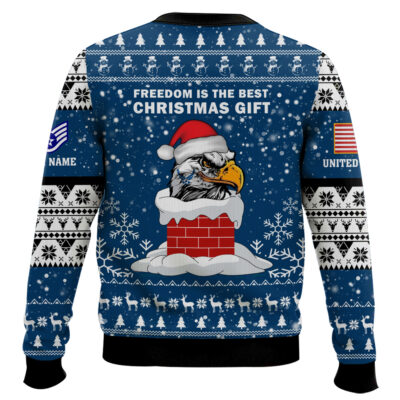 Hooktab US Air Force Freedom Is The Best Gift – Custom Name And Rank Ugly Sweater