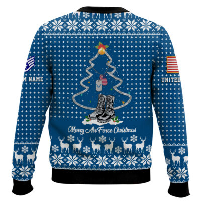 Hooktab US Air Force Merry Christmas – Custom Name And Rank Ugly Sweater