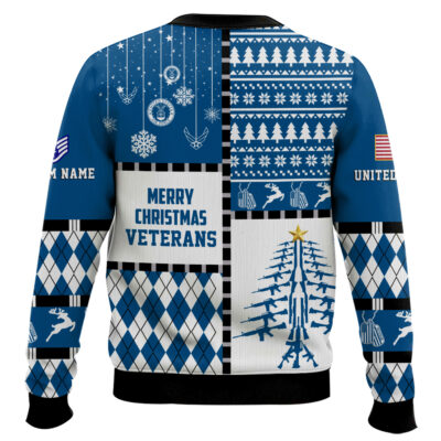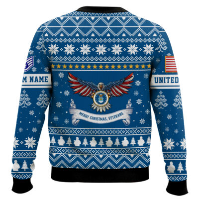 Hooktab US Air Force Merry Christmas Veteran – Custom Name And Rank Ugly Sweater