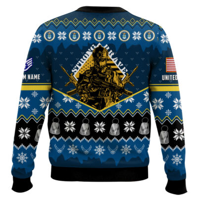 Hooktab US Air Force Strong And Brave – Custom Name And Rank Ugly Sweater