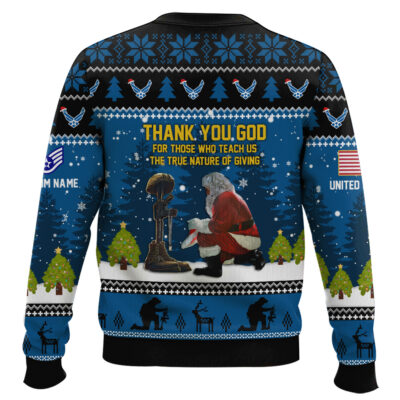 Hooktab US Air Force Thank You God – Custom Name And Rank Ugly Sweater