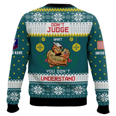 Hooktab US Coast Guard Don’t Judge What You Don’t Understand – Custom Name And Rank Ugly Sweater
