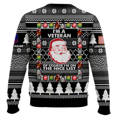 Hooktab US Coast Guard I’m A Veteran, Of Course I’m On The Nice List – Custom Name And Rank Ugly Sweater