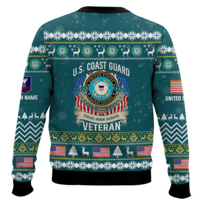 Hooktab US Coast Guard Veteran Proudly Served – Custom Name And Rank Ugly Sweater