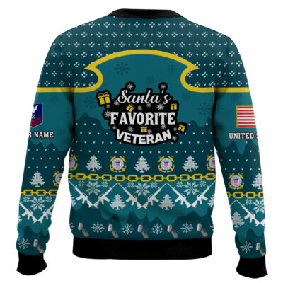 Hooktab US Coast Guard Santa’s Favorite Veteran – Custom Name And Rank Ugly Sweater