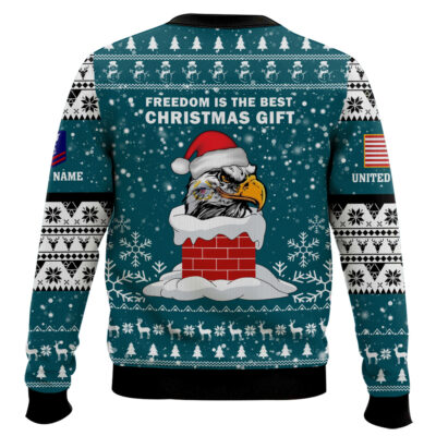 Hooktab US Coast Guard Freedom Is The Best Gift – Custom Name And Rank Ugly Sweater
