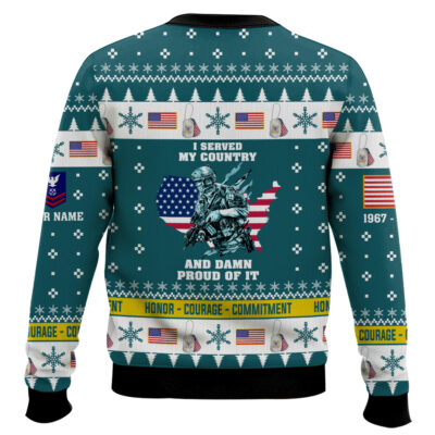 Hooktab US Coast Guard I Served My Country And Damn Proud Of It – Custom Name, Rank And Years Of Service Ugly Sweater