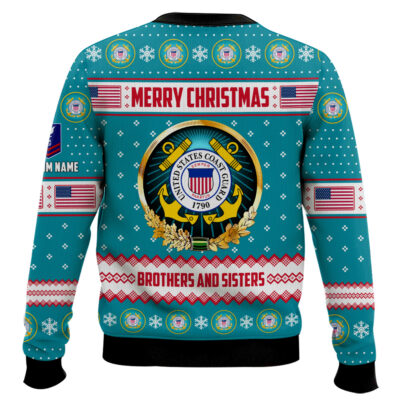 Hooktab US Coast Guard Merry Christmas Brothers And Sisters – Custom Name And Rank Ugly Sweater