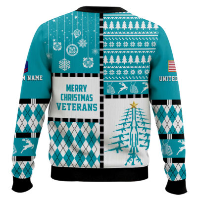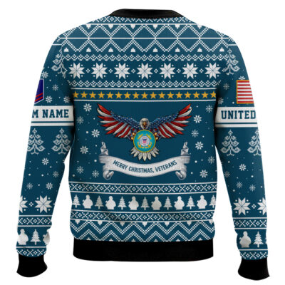 Hooktab US Coast Guard Merry Christmas Veteran – Custom Name And Rank Ugly Sweater
