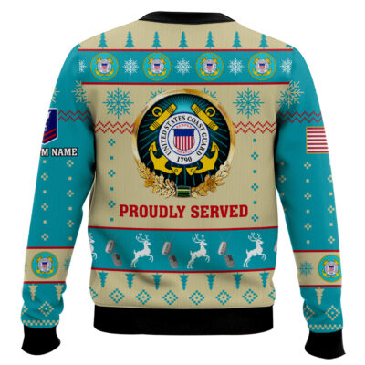 Hooktab US Coast Guard Proudly Served – Custom Name And Rank Ugly Sweater