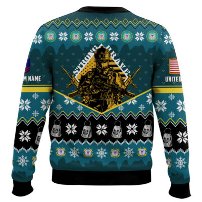 Hooktab US Coast Guard Strong And Brave – Custom Name And Rank Ugly Sweater