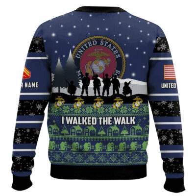 Hooktab US Marine Corps I Walked The Walk – Custom Name And Rank Ugly Sweater