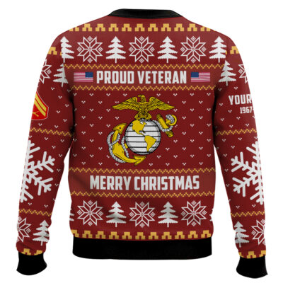 Hooktab US Marine Corps Proud Veteran – Custom Name, Rank And Years Of Service Ugly Sweater