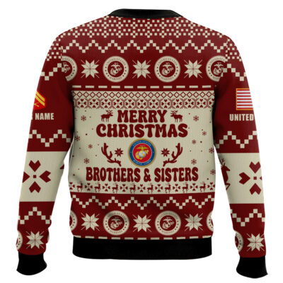 Hooktab US Marine Corps Merry Xmas Brothers And Sisters – Custom Name And Rank Ugly Sweater
