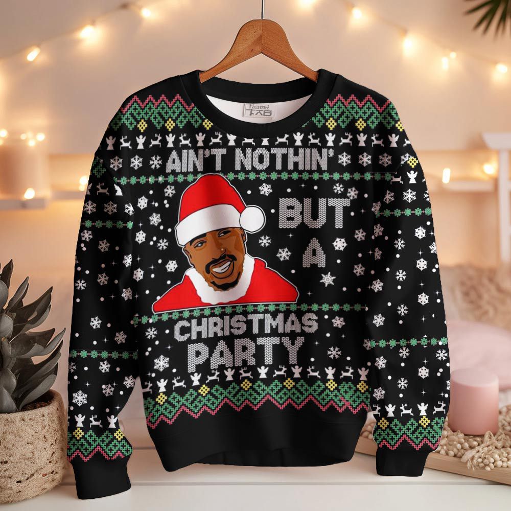 Hooktab 2PAC Ain’t Nothing But A Christmas Party Ugly Christmas Sweater