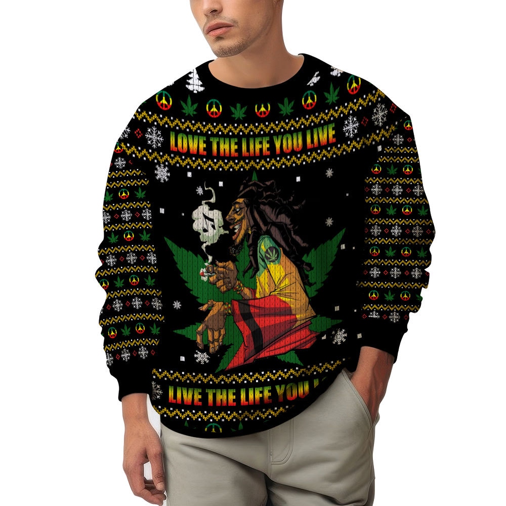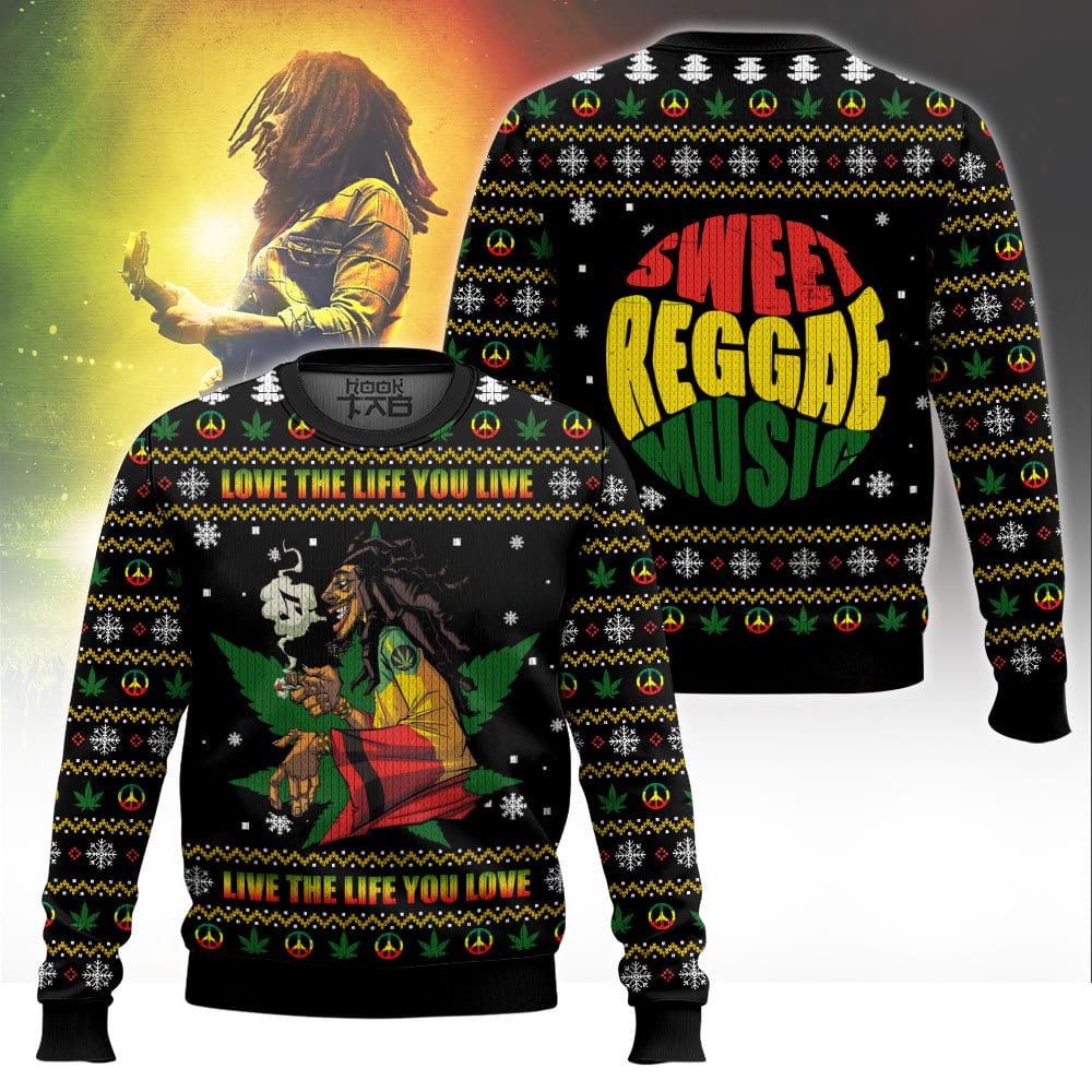 Hooktab 420 Bob Marley “Love The Life You Live, Live The Live You Love” Ugly Christmas Sweater