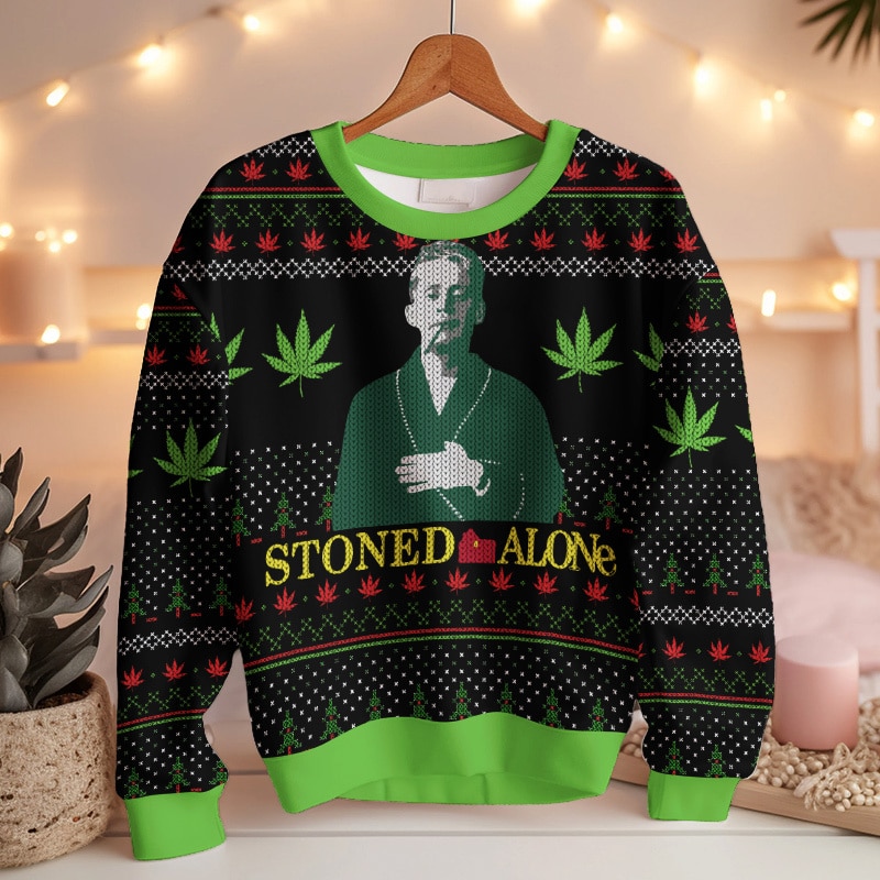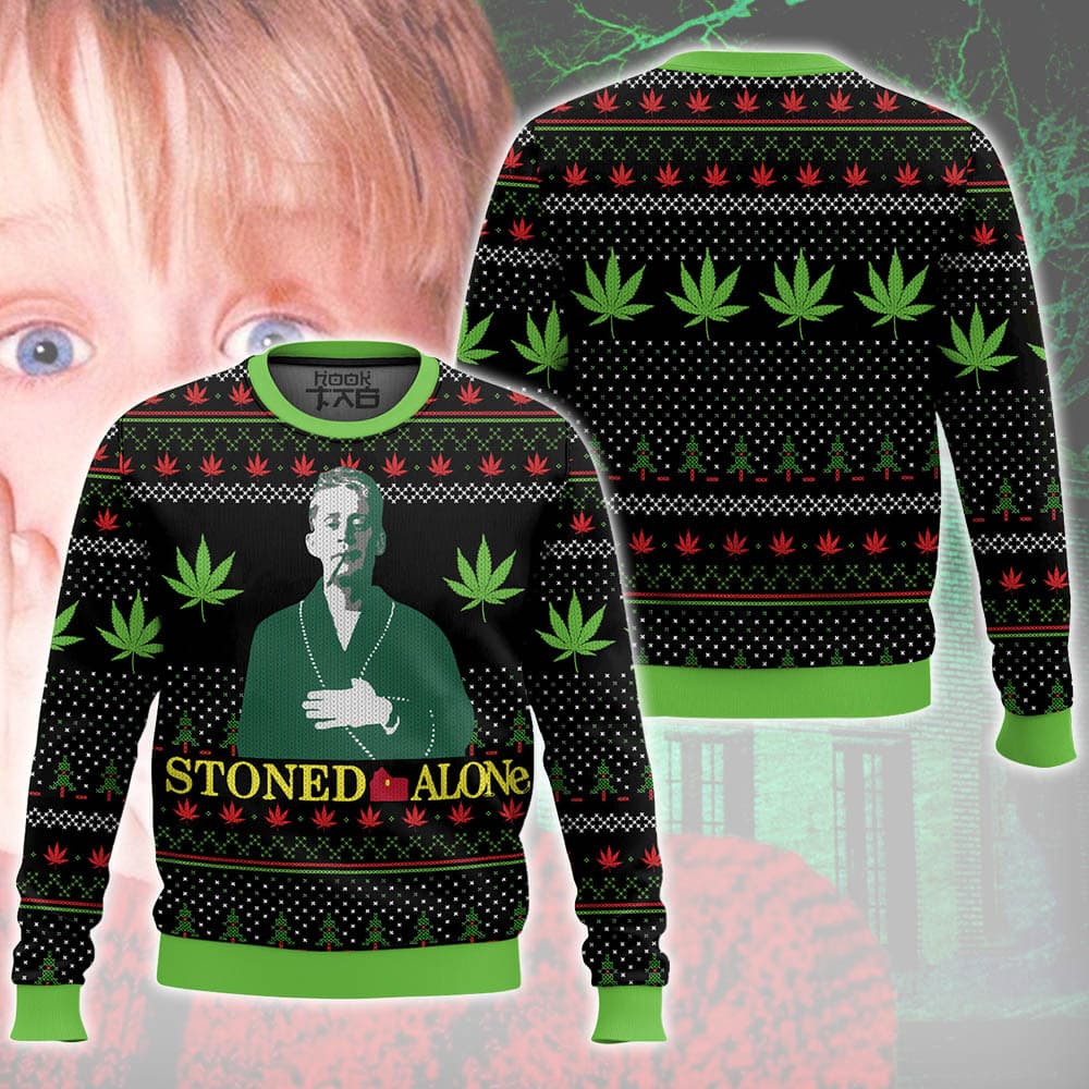 Hooktab 420 Stoned Alone Ugly Christmas Sweater
