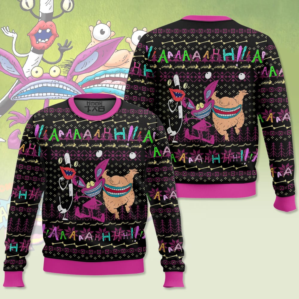 Hooktab Aaahh!!! Real Monsters Ugly Christmas Sweater