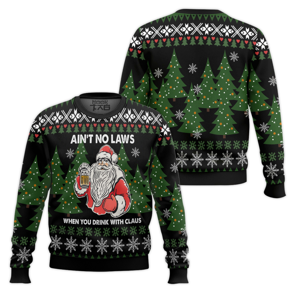 Hooktab Aint No Laws When Youre Drinking With Claus Ugly Christmas Sweater