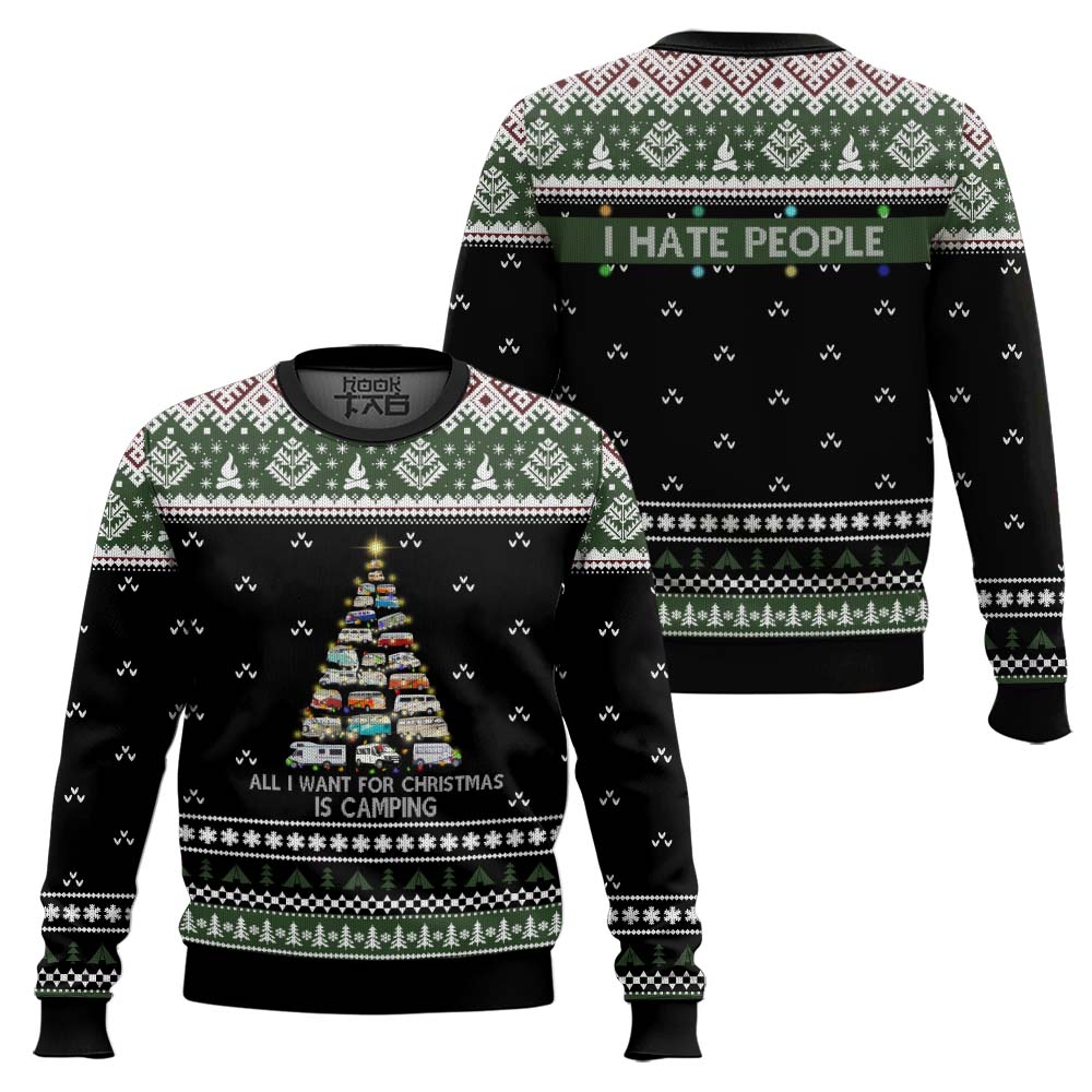 Hooktab All I Want For Christmas Is Camping Ugly Christmas Sweater