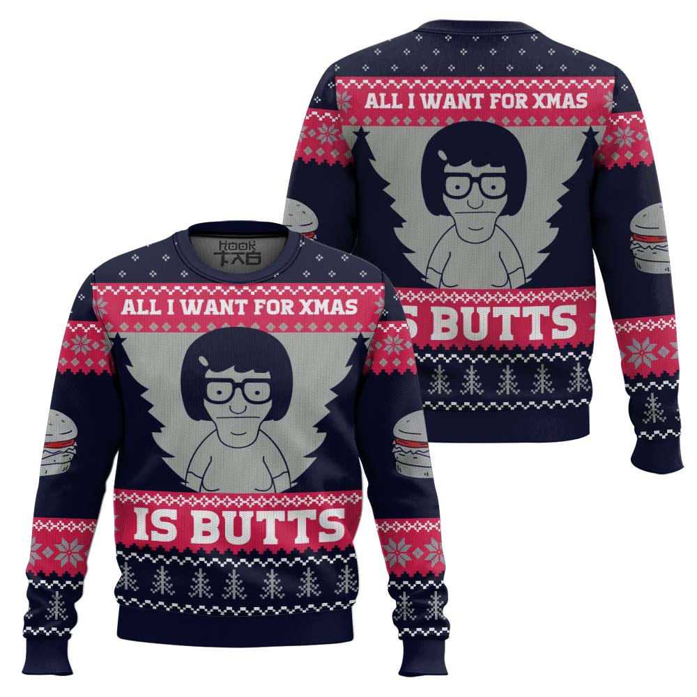 Hooktab All I Want For Xmas Is Butts Bob’s Burgers Ugly Christmas Sweater
