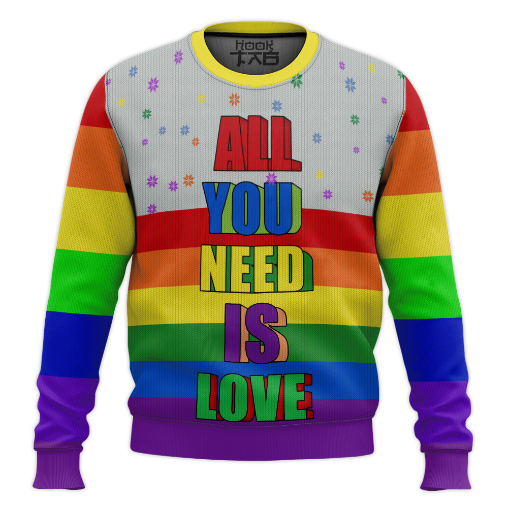 Hooktab All You Need Is Love LGBT Support Ugly Christmas Sweater