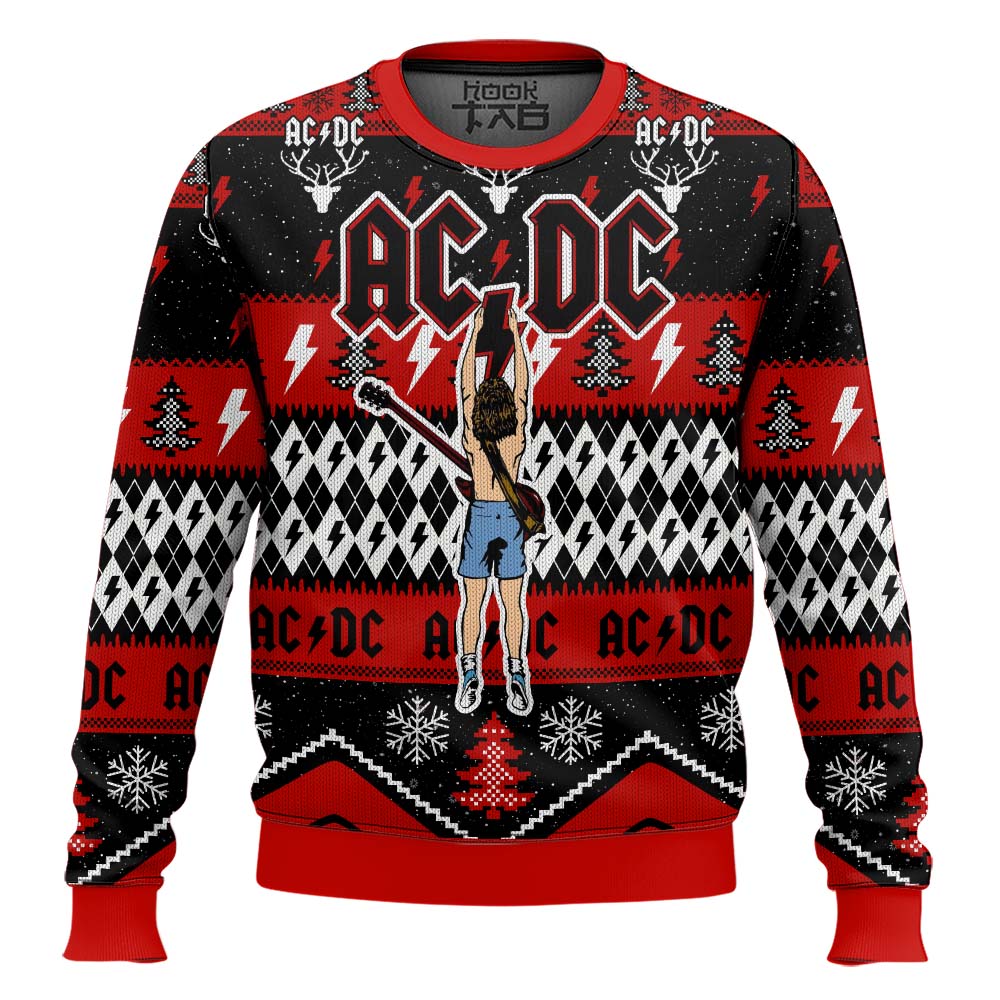 Hooktab Angus Young Hold Lightning AC/DC Ugly Christmas Sweater
