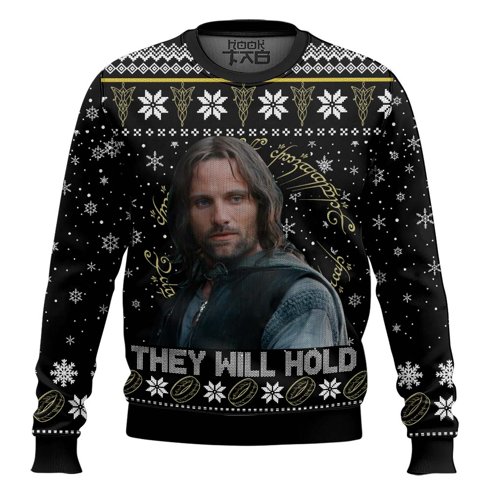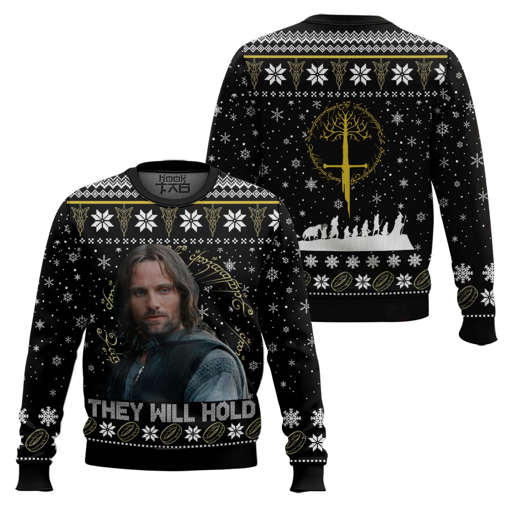 Lord Of The Rings Aragorn Quotes Ugly Christmas Sweater- Aragorn They Will Hold Sweater – Ugly Christmas Sweater- Jumper