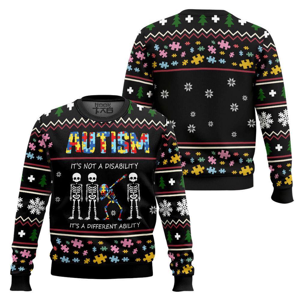 Hooktab Autism Is Not Disability Ugly Christmas Sweater